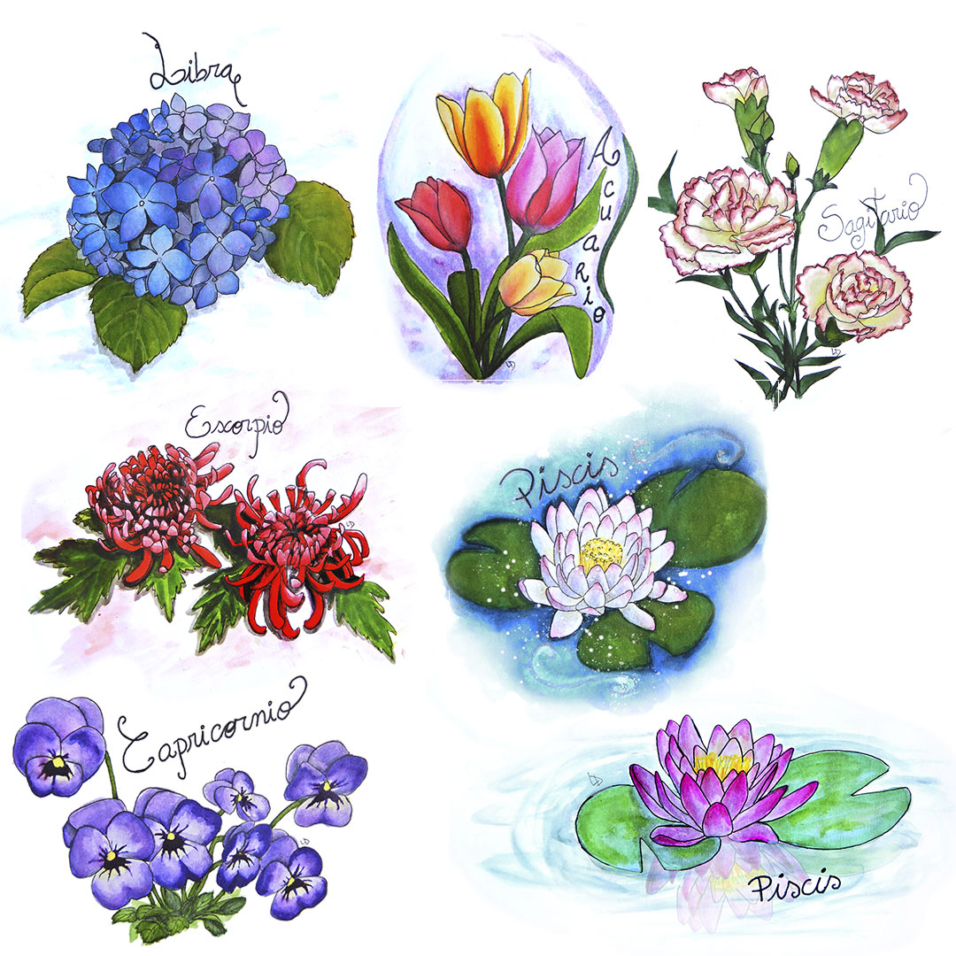 FLORES ZODIACALES: Libra, Escorpio, Sagitario, Capricornio, Acuario, Piscis - Brush Pen