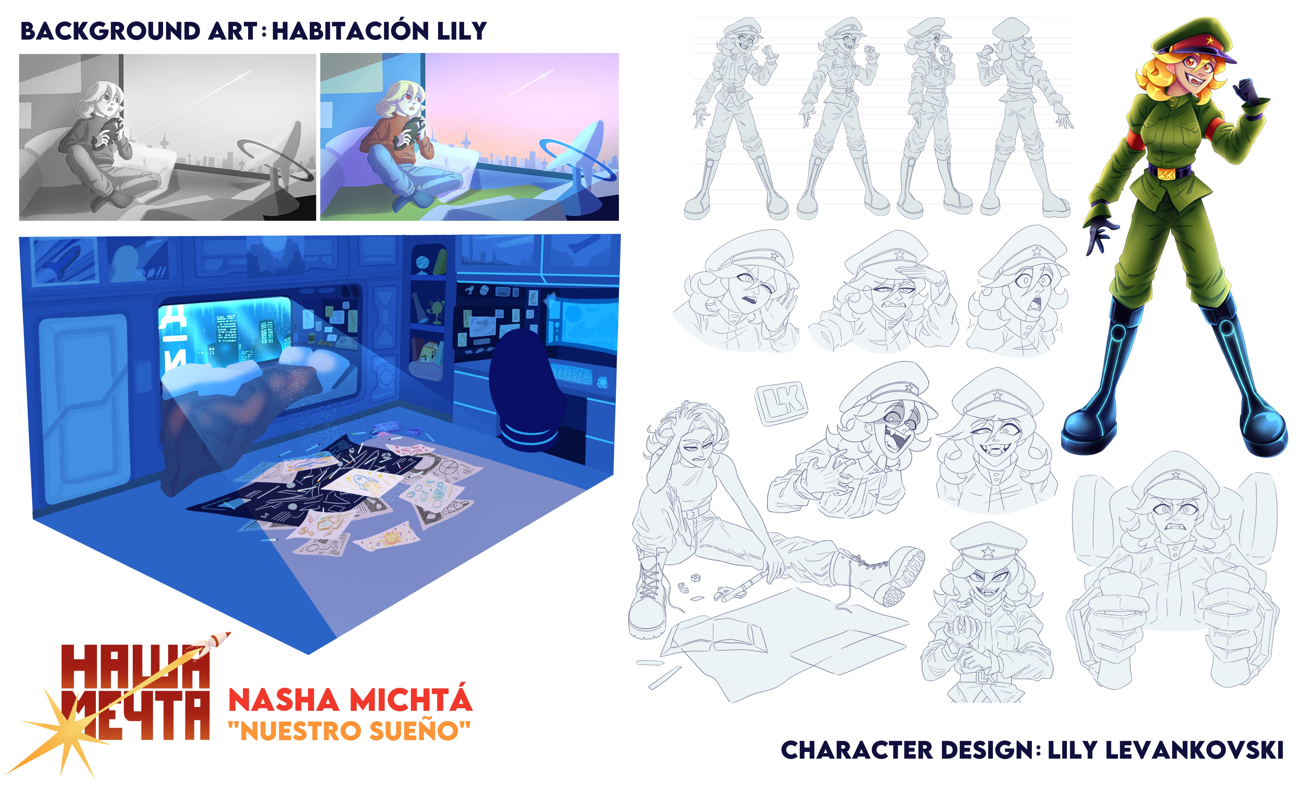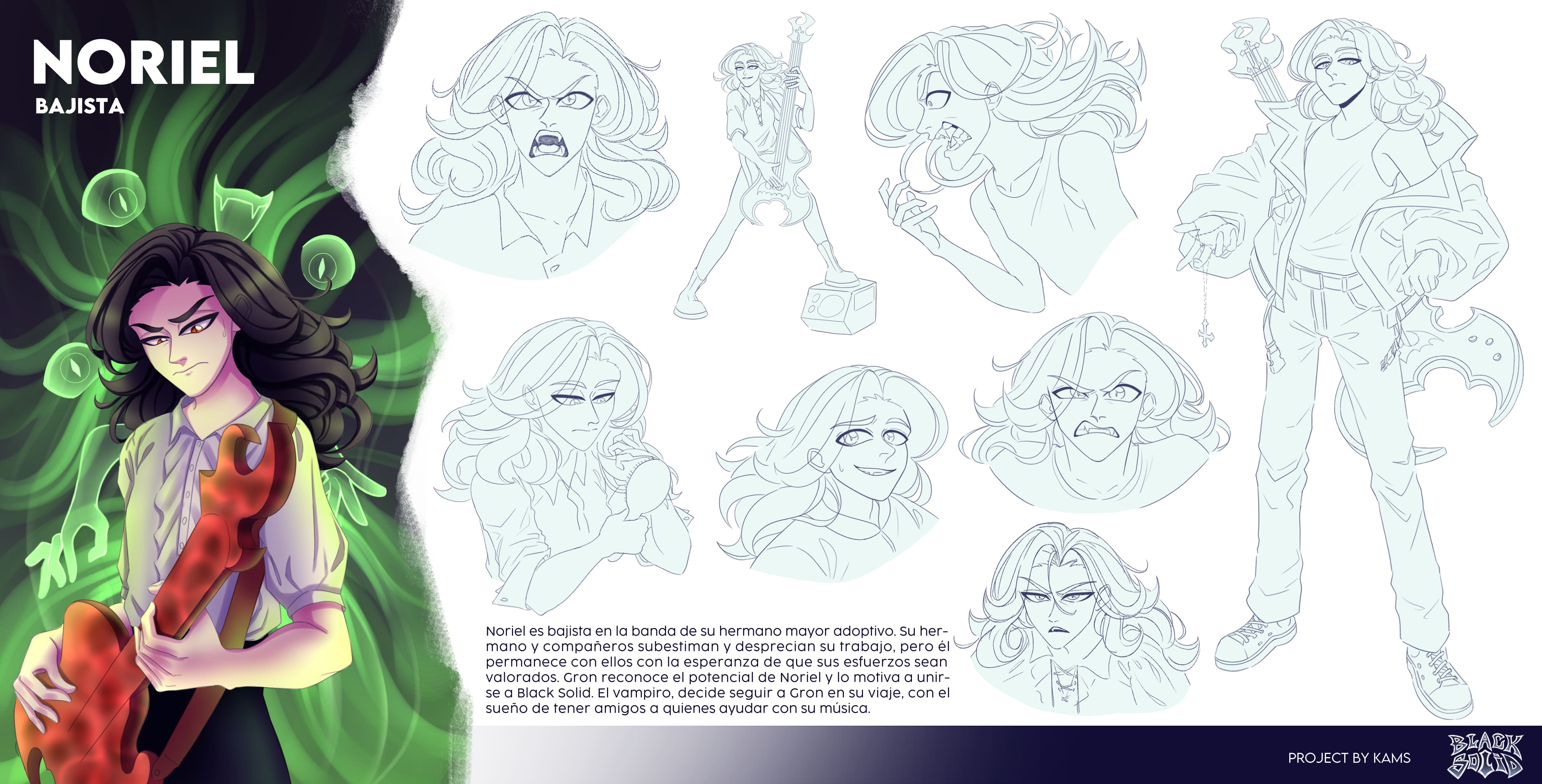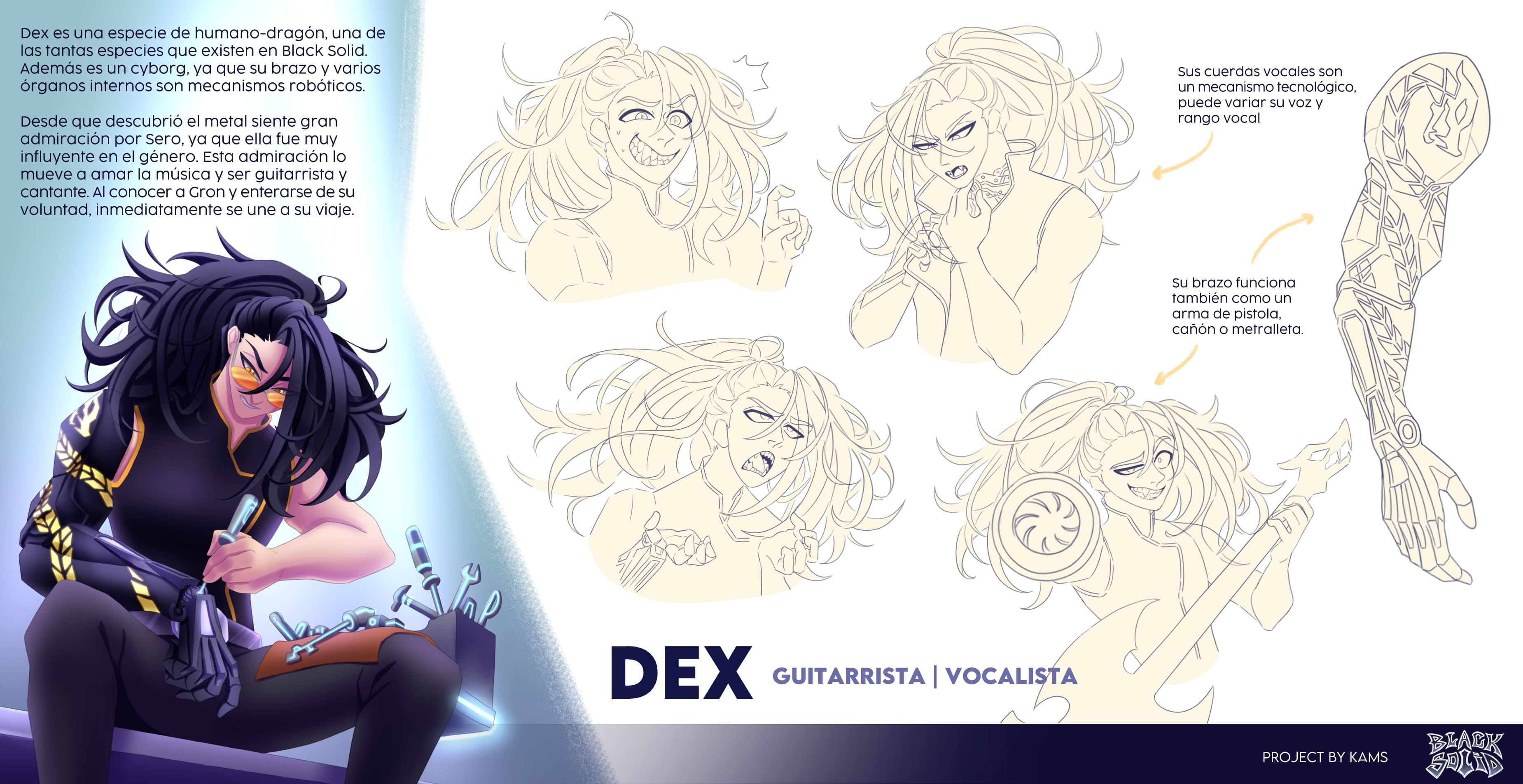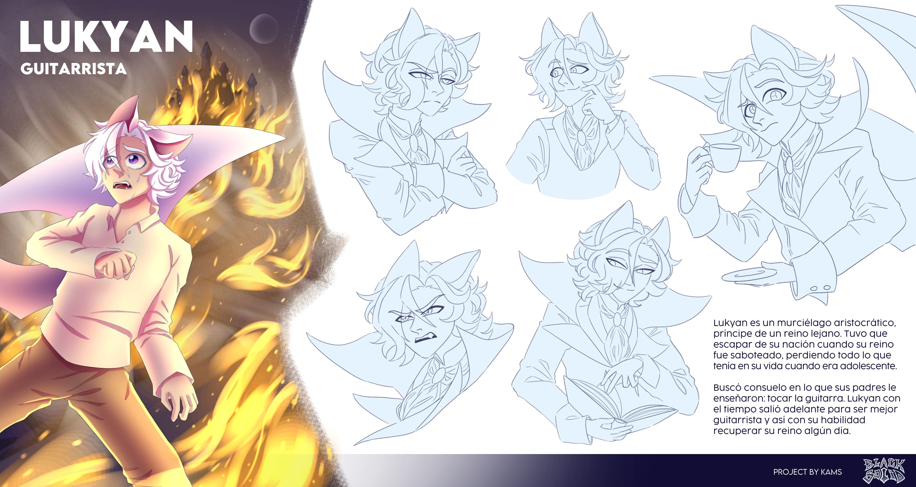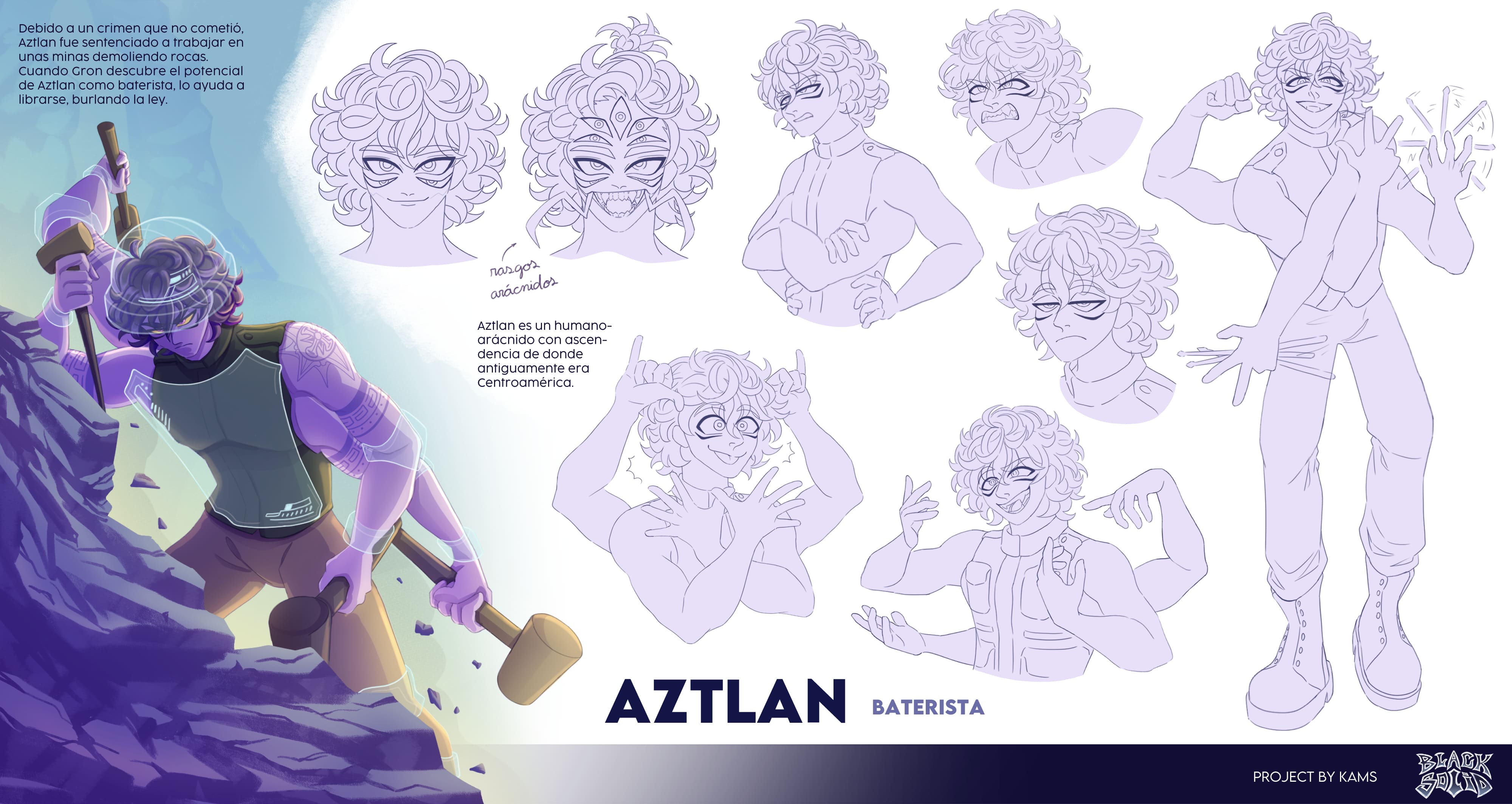 Aparte de dibujar, creo historias y escribo guiones de ciencia ficción y fantasía, siendo mis grandes inspiraciones la música power metal y las películas sci-fi. Actualmente me dedico a realizar el desarrollo visual de estas historias, proyectando mi trabajo hacia la industria de la animación y videojuegos.