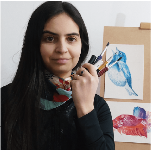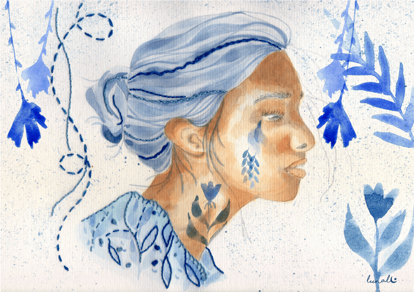 My name is Lucía, graduated in Fine Arts and University Professor, I ventured into the world of watercolors, illustration, lettering and engraving. My work is characterized by the constant appearance of female faces, combined with botanical atmospheres, generally warm colors and light surrealist touches. The materials that predominate in my works are watercolors, inks, and lately the taste for graphite and digital. Although always, I find myself exploring multiple techniques in new jobs.
