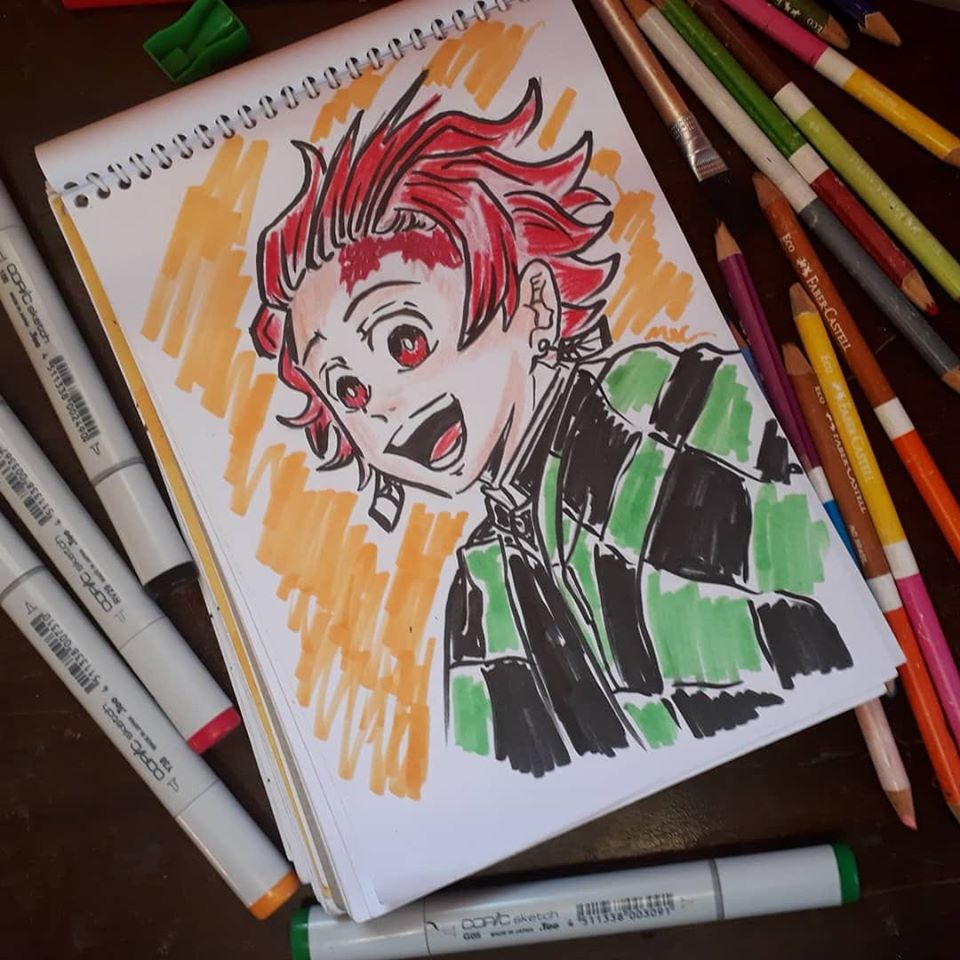 Ilustración tradicional, Kamado Tanjiro de Kimetsu no yaiba.